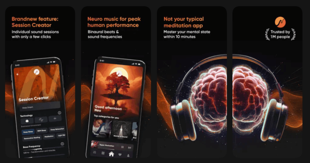 | Neowake | Advanced brainwave technology | Gamma waves up to 100 Hz, bilateral beats, 3D audio | 4.5/5 | Free trial, subscription |
