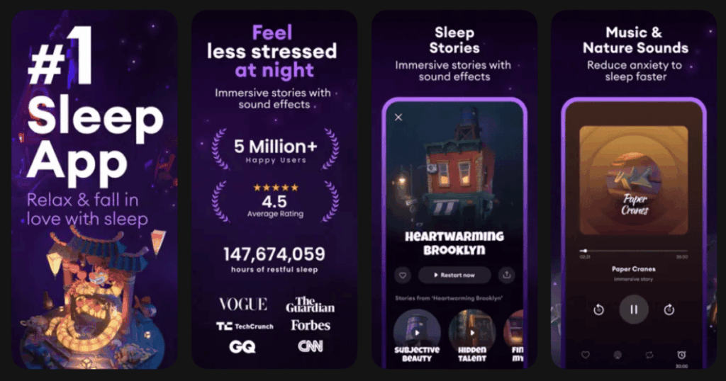 The animations and explanations make everything easy to understand. Sleepcasts are the main sleep feature here. They are like audio tours that guide your mind to restful places. The app also has wind-down exercises to prepare your body for sleep.