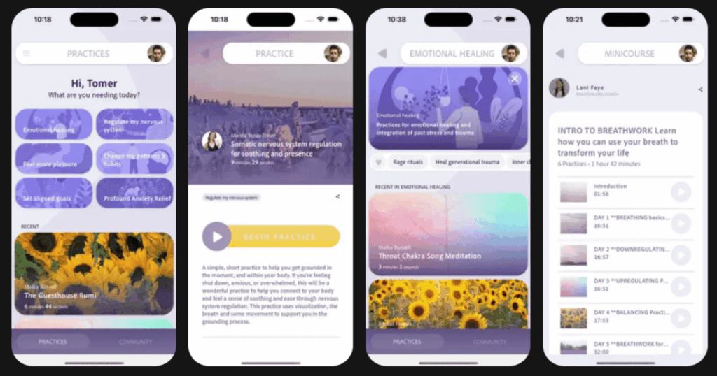SomaShare focuses on deep healing work. The app features over 80 expert practitioners. They specialize in somatic psychology and nervous system work.