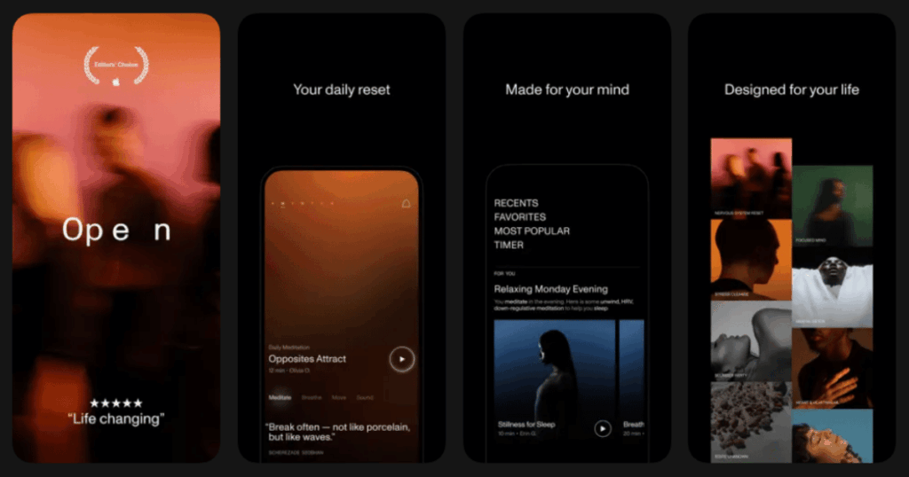 Open bridges the gap between breathwork, meditation, and physical movement. The app combines breathing exercises with yoga, pilates, and fitness classes. Everything is designed to regulate your nervous system.