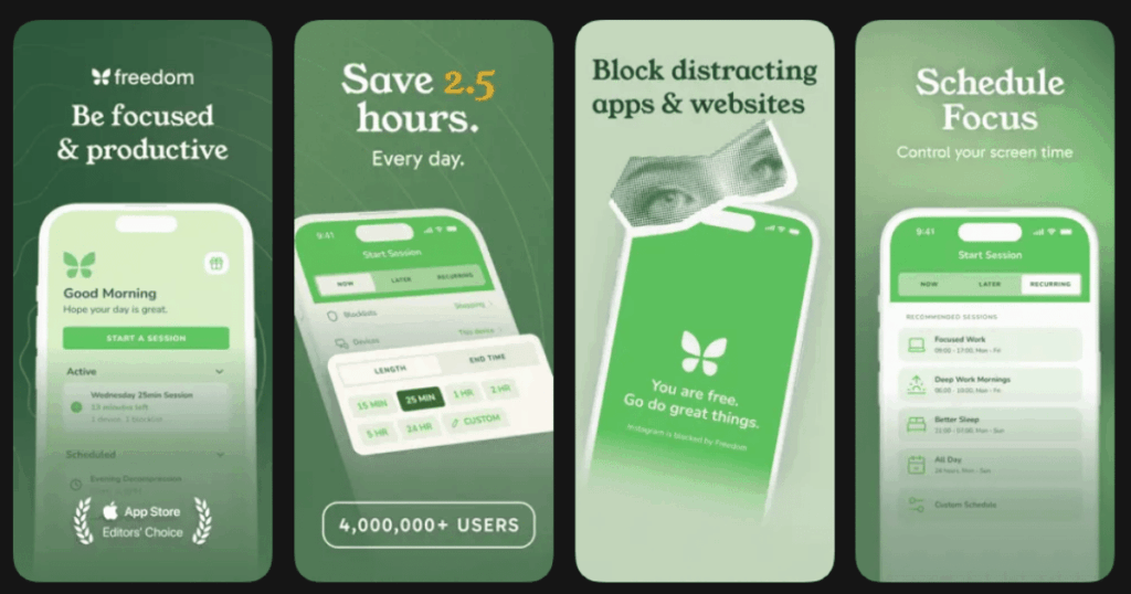 | Freedom | Cross device distraction blocking | Multi device sync, website and app blocking, locked sessions | 4.4/5 | Free trial, subscription based |