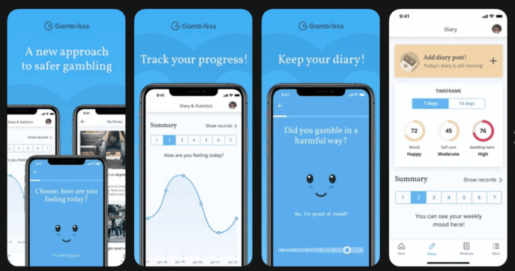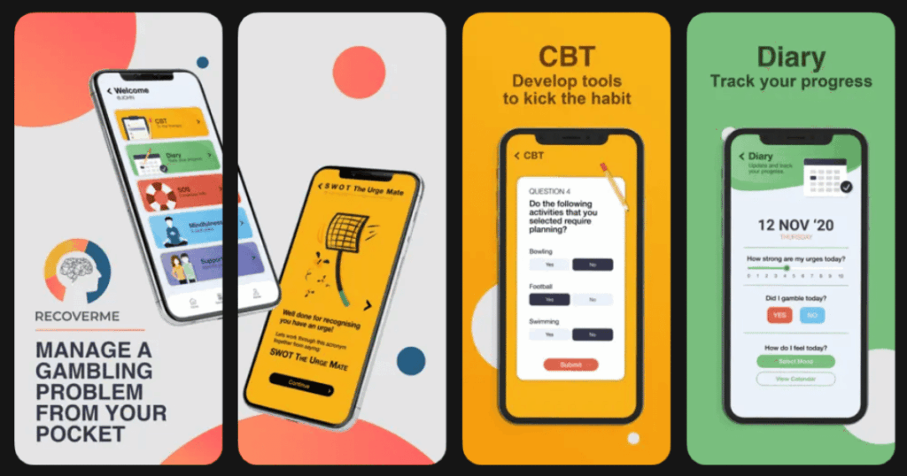 | Gambless | Psychology based self therapy | CBT and Gestalt therapy, emergency chat, personal diary | 4.5/5 | Free basic, premium available |