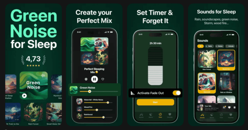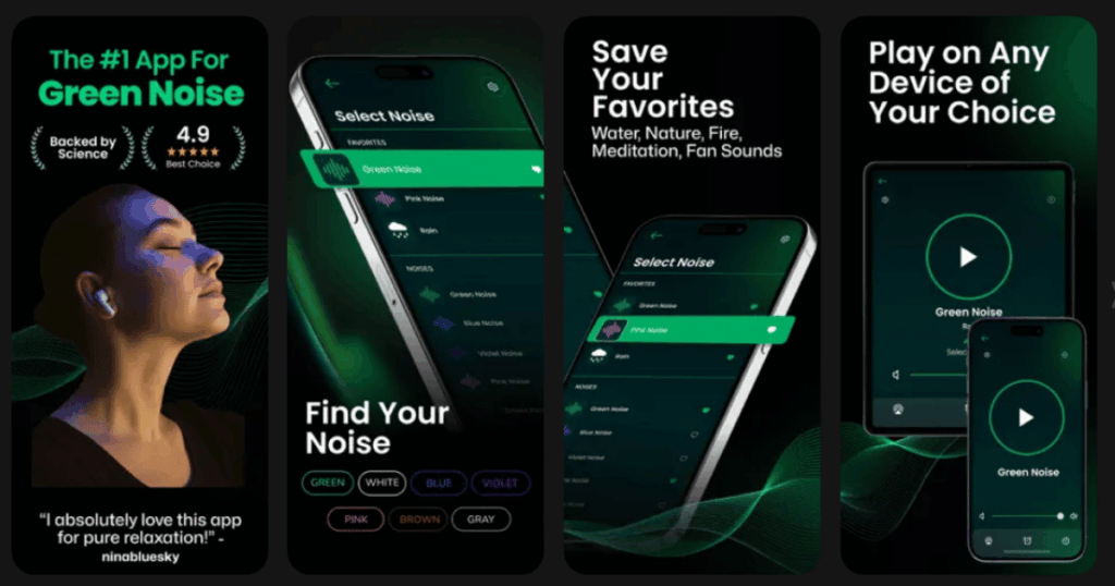 #7. Green Noise App – Best for Quick Bedtime Routine