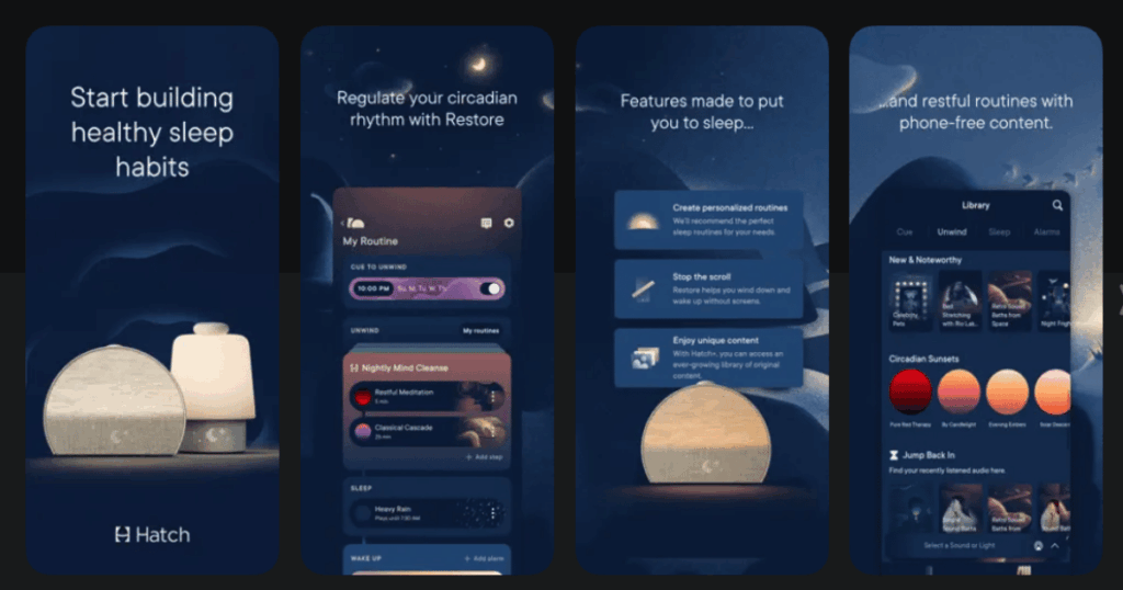 Pricing: Free app with Hatch device. Optional Hatch+ subscription for expanded content.