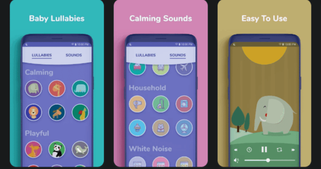 | Lullabo | Cute Animal Themed Lullabies | Animal lullabies, nature sounds, white noise variations | 4.4/5 | Free with subscription |