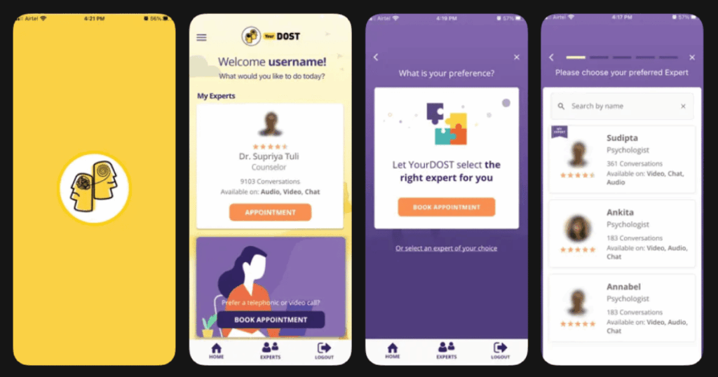 YourDOST is one of India’s first and largest online counseling platforms. They have over 1000 experts including psychologists, life coaches, and career counselors. The platform focuses on making professional help accessible and anonymous.