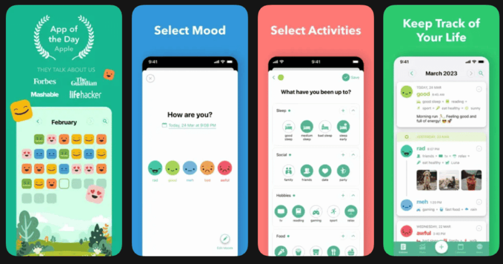 The visual approach makes tracking feel effortless. Even on your worst days, you can log an entry in seconds. The statistics and charts help you understand what activities boost or hurt your mood. Many therapists now recommend Daylio to their clients.