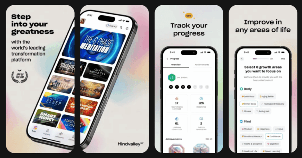 Mindvalley goes beyond simple meditation to offer complete personal transformation programs. You learn from world-renowned experts on topics from mindfulness to productivity. The app combines education with practical exercises you can do daily.