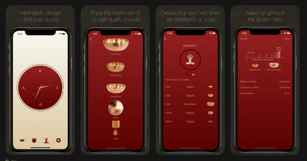 | i-Qi Clock | Wake up gently with bowls | Alarm clock, meditation timer, Zen design | 4.2/5 | Paid app |