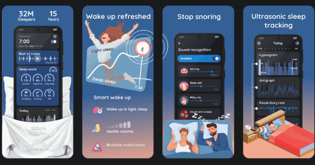 The app uses your phone’s microphone or accelerometer to track your sleep. It figures out when you are in light sleep versus deep sleep. Then it wakes you up during light sleep so you feel refreshed.