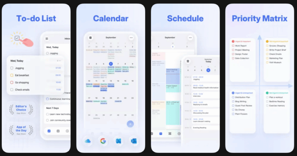 TickTickComprehensive task managementPomodoro timer, habit tracker, Eisenhower Matrix4.4/5Free tier, premium available